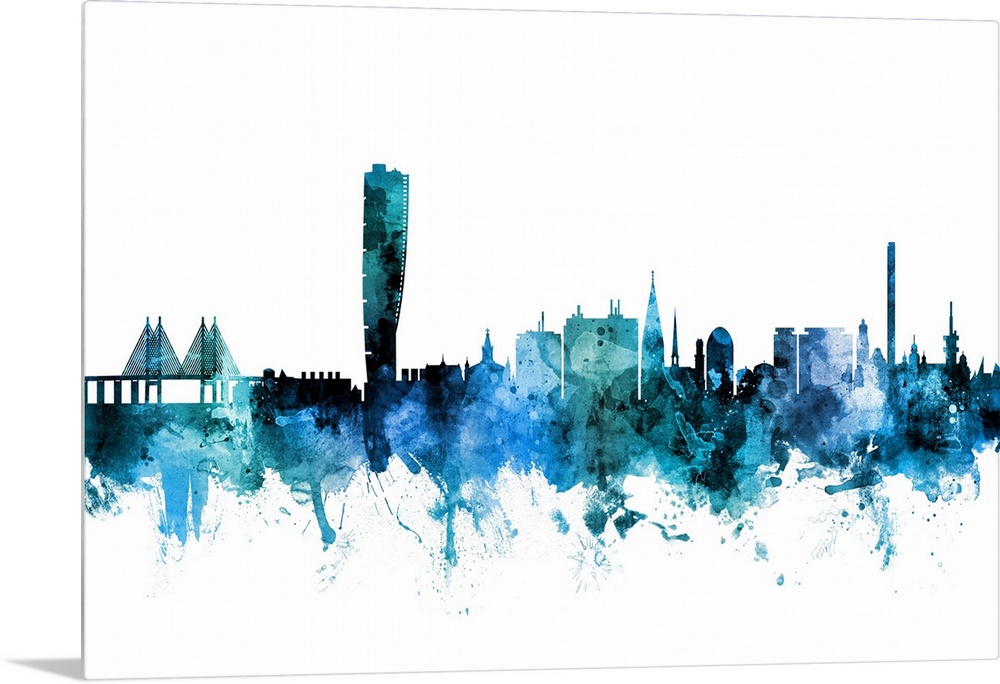 <p>Watercolor art print of the skyline of Malmo, Sweden (Sverige).</p>
