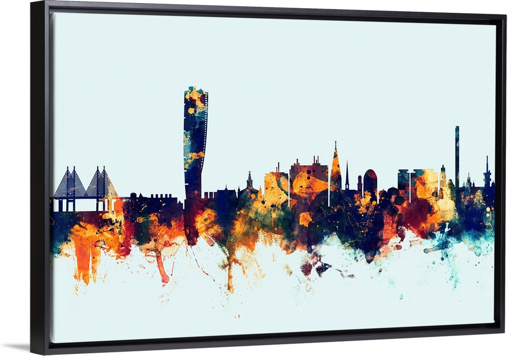 <p>Watercolor art print of the skyline of Malmo, Sweden (Sverige).</p>