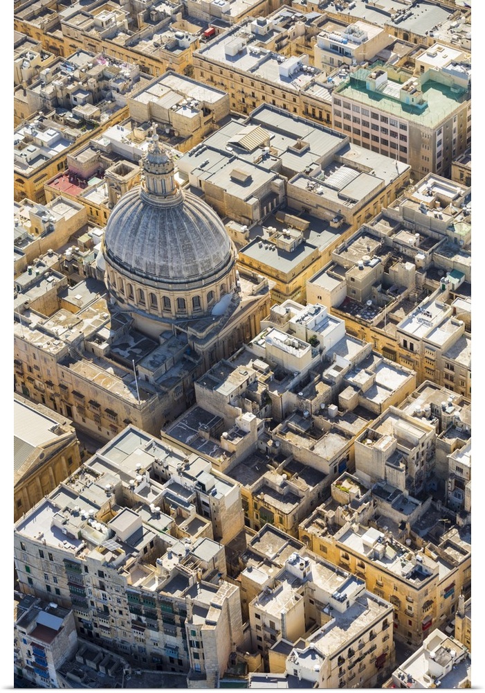 <p>Malta, South Eastern Region, Valletta. Aerial view of the dome of the Carmelite Church.</p>