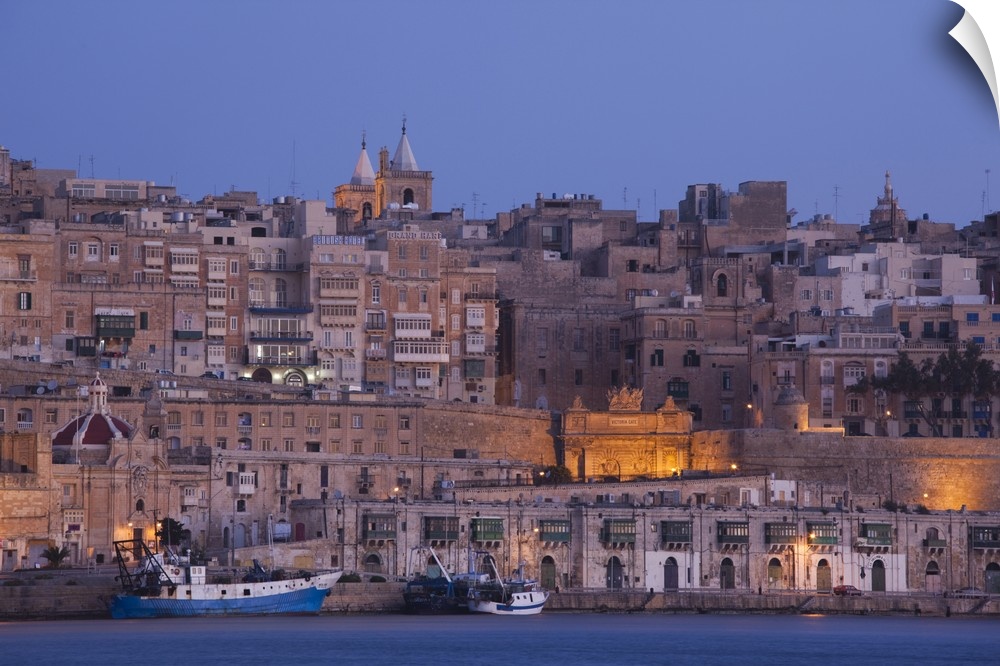<p>Malta, Valletta, town view from Vittoriosa, Birgu, dawn</p>