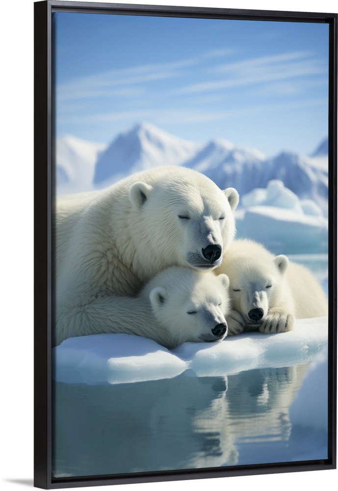 <p>Mama polar bear sleeping with her cubs.</p>
