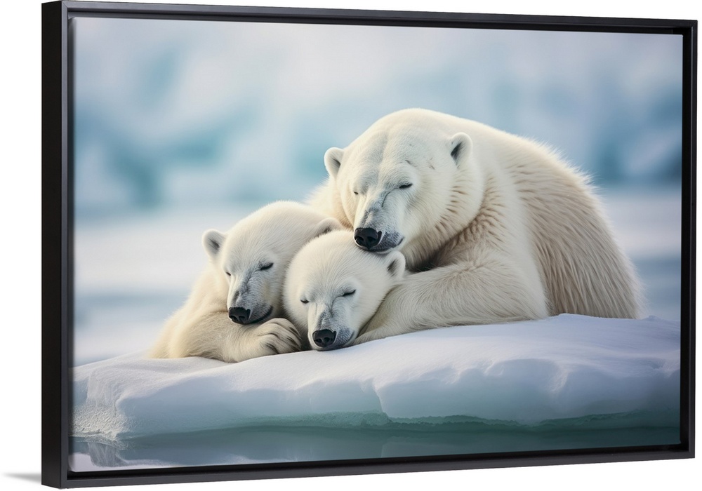 <p>Mama polar bear sleeping with her cubs in the artic.</p>