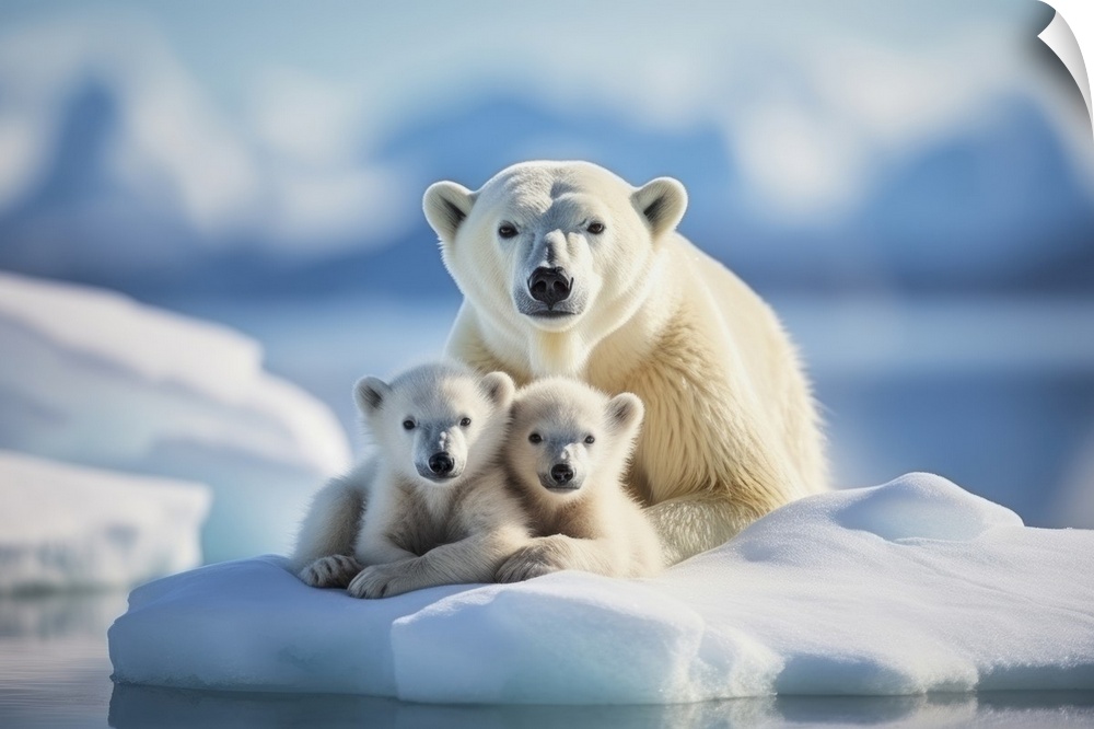 <p>Mama polar bear with her cubs.</p>