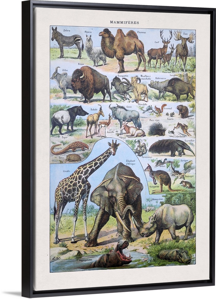 <p>Old illustration about wild mammals by Millot printed in the french dictionary "Dictionnaire Complet et Illustrate" by the editor Larousse in 1889.</p>