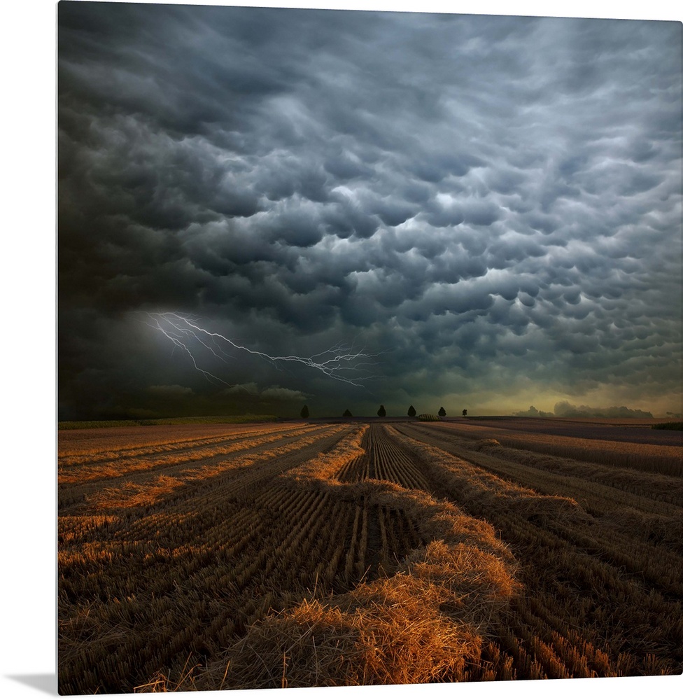 <p>Strange storm cloud formations and lightning over farmland in Strohgaeu, Germany.</p>