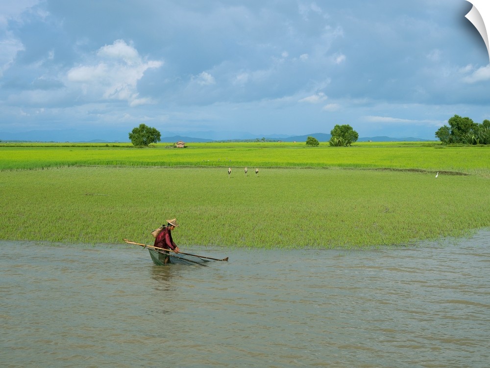 <p>Man fishing at edge of Kaladan River, Rakhine State, Myanmar</p>