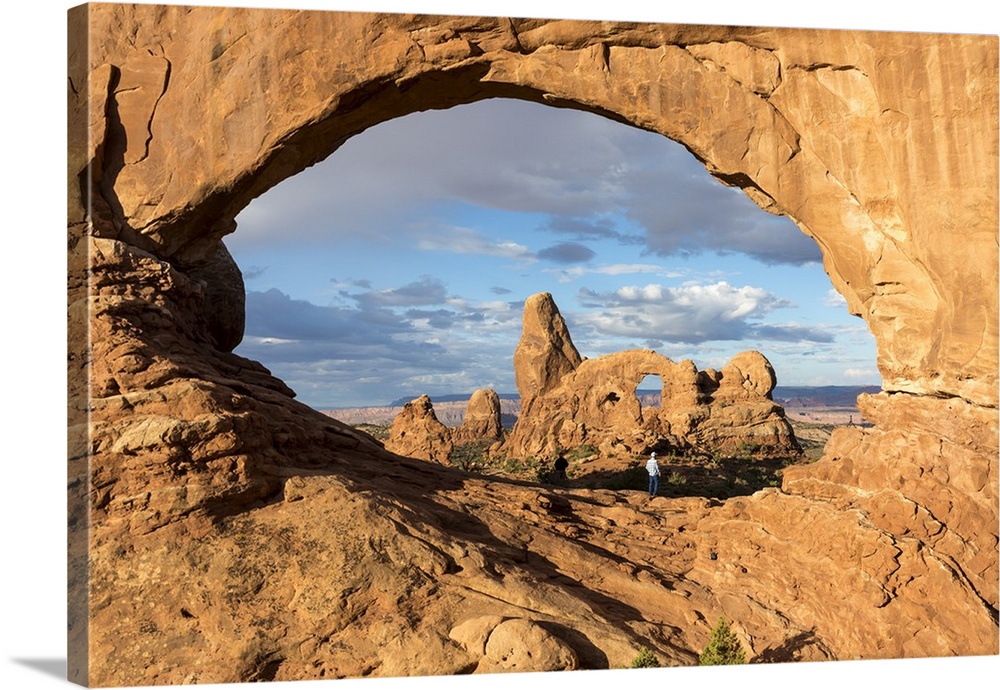 <p>Man overlooking Turret Arch from North Window. Arches National Park, Moab, Grand County, Utah, USA.</p>