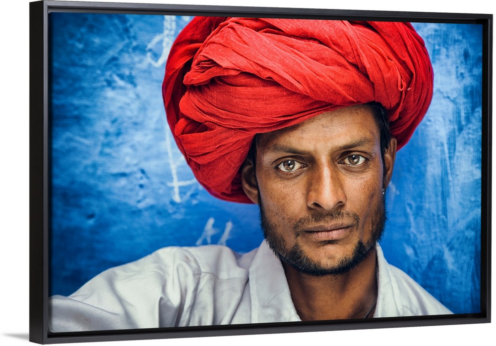 <p>Man with red turban in the Blue City of Jodhpur, India.</p>