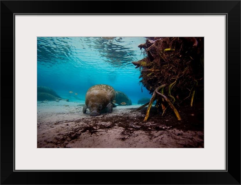<p>Manatees swim along the sandy floor of Crystal River.</p>