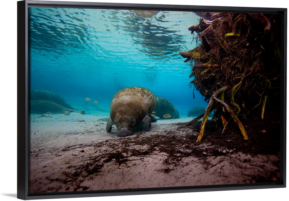 <p>Manatees swim along the sandy floor of Crystal River.</p>