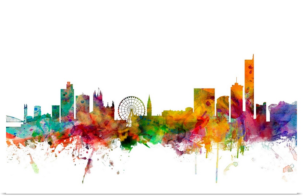 <p>Contemporary piece of artwork of the Manchester skyline made of colorful paint splashes.</p>