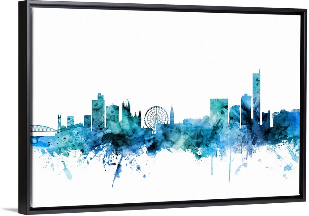 <p>Watercolor art print of the skyline of Manchester, England, United Kingdom.</p>