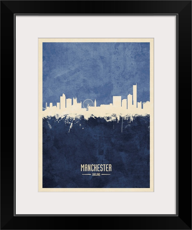 <p>Watercolor art print of the skyline of Manchester, England, United Kingdom</p>