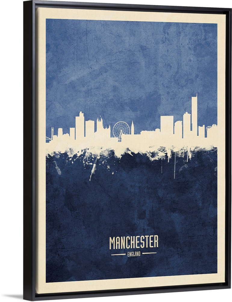 <p>Watercolor art print of the skyline of Manchester, England, United Kingdom</p>