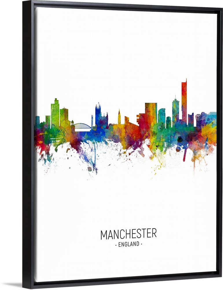 <p>Watercolor art print of the skyline of Manchester, England, United Kingdom</p>