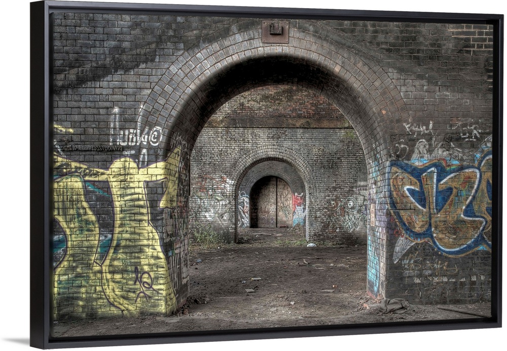 <p>HDR photograph of a tunnel with its walls filled with graffiti.</p>