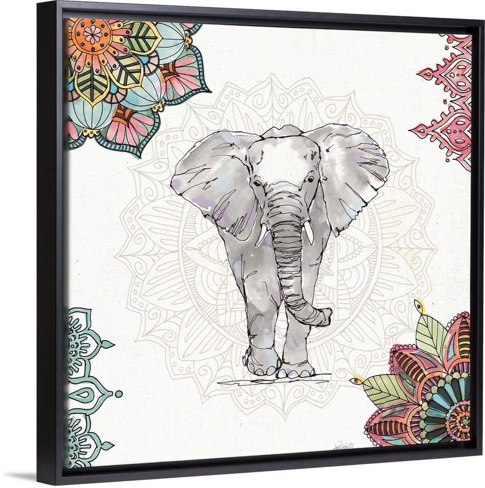 <p>Bohemian style decor with an illustration of an elephant with colorful mandalas all around.</p>