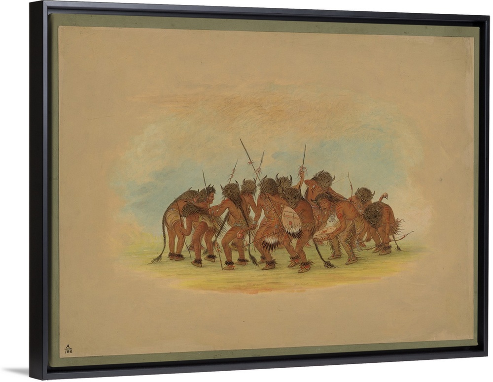 <p>Mandan Buffalo Dance, 1861, oil on card mounted on paperboard. By George Catlin (1796-1872).</p>