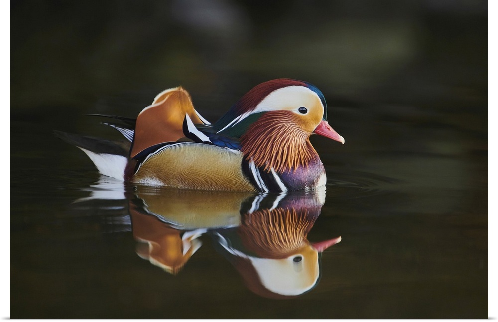 <p>Mandarin duck (Aix galericulata) male swimming on a lake, Bavaria, Germany</p>