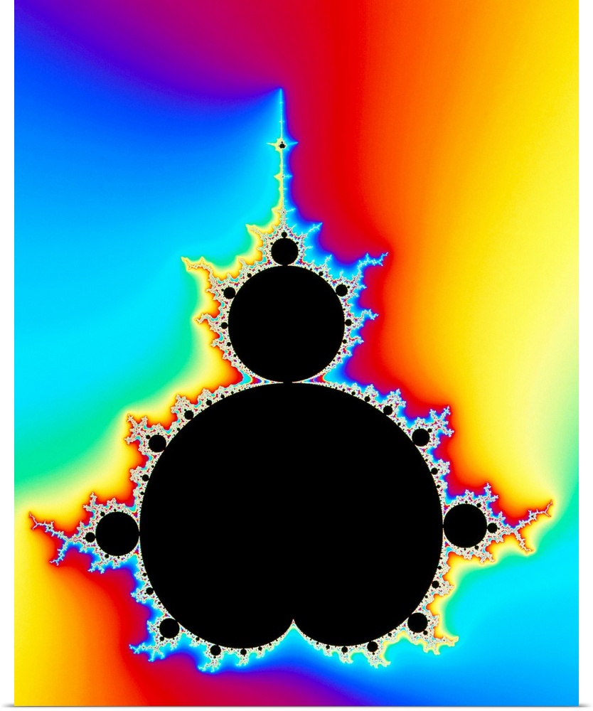 <p>Mandelbrot fractal. Computer graphic showing a fractal image derived from the Mandelbrot Set. Fractals geometry is used to derive complex shapes as often occur in nature. The Mandelbrot Set, named after the mathematician Benoit B. Mandelbrot, is a group of complex numbers. Each point is assigned a colour depending upon its behaviour plotted under a series of simple but repeated mathematical operations or mappings. Generated on a computer screen, fractals are used to create models for real-world non-linear phenomena such as stock market prices, weather forecasting, plant growth, erosion of coastlines and fluid turbulence.</p>