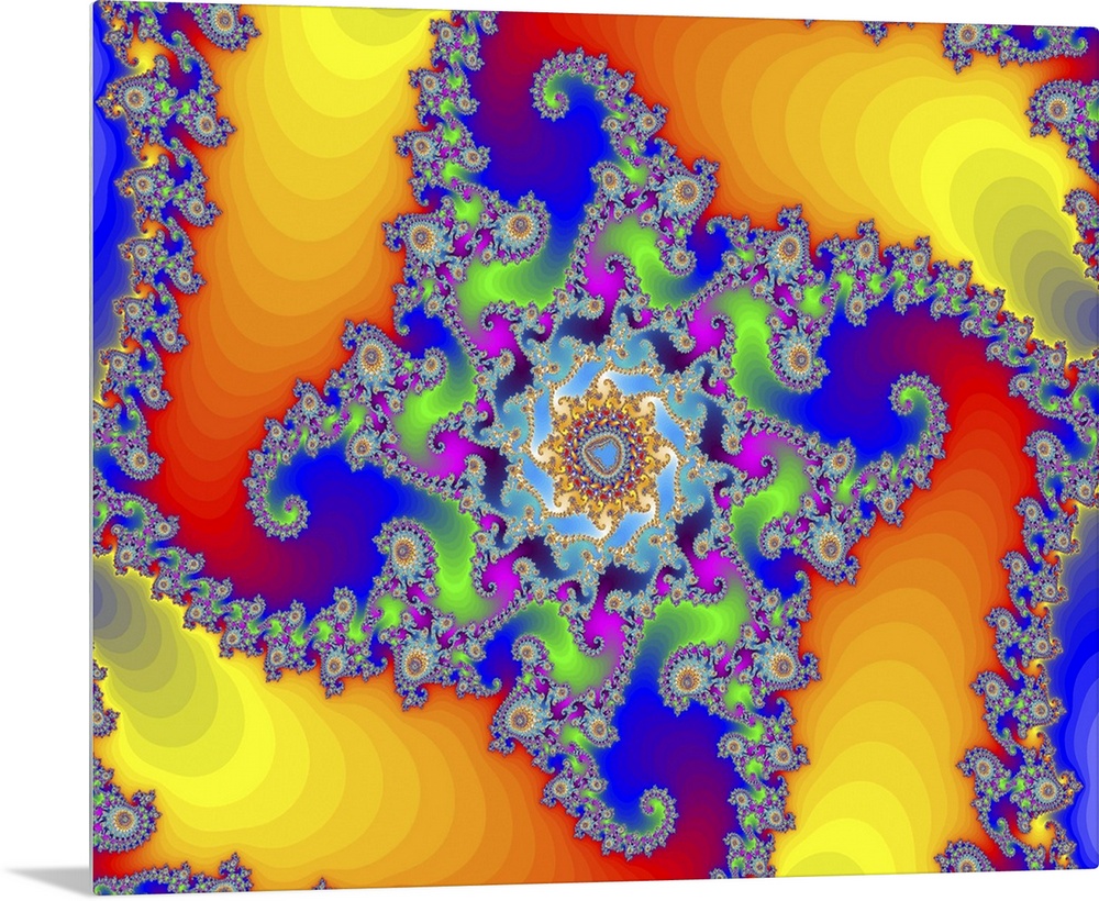 <p>Mandelbrot fractal. Computer-generated image derived from a Mandelbrot Set. Fractal geometry is used to derive complex shapes as are often found in nature. The Mandelbrot Set, named after the mathematician Benoit B. Mandelbrot, is a group of complex numbers plotted using their real and imaginary parts as coordinates. Complex patterns are produced by a series of repeated mathematical operations or mappings. Generated on a computer screen, fractals are used to create models for real-world non-linear phenomena such as stock market prices, plant growth, the erosion of coastlines and fluid turbulence.</p>