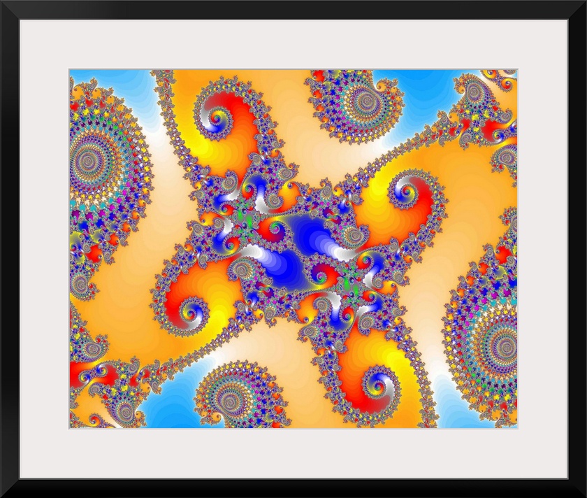 <p>Mandelbrot fractal. Computer-generated image derived from a Mandelbrot Set. Fractal geometry is used to derive complex shapes as are often found in nature. The Mandelbrot Set, named after the mathematician Benoit B. Mandelbrot, is a group of complex numbers plotted using their real and imaginary parts as coordinates. Complex patterns are produced by a series of repeated mathematical operations or mappings. Generated on a computer screen, fractals are used to create models for real-world non-linear phenomena such as stock market prices, plant growth, the erosion of coastlines and fluid turbulence.</p>
