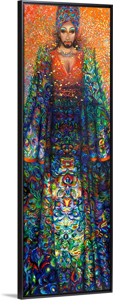 <p>Brightly colored contemporary artwork of Manghoe Lassi in colorful robes.</p>