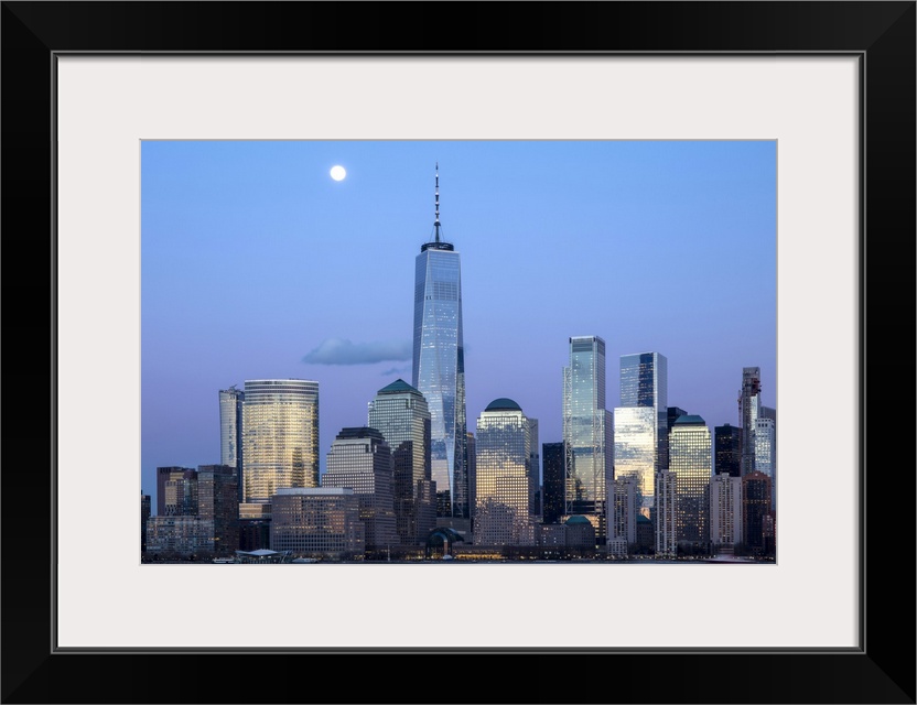 <p>Manhattan and the One World Trade Centre at dusk, from the Exchange Place, Jersey City, New Jersey, USA</p>