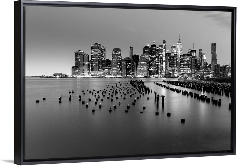 <p>Manhattan at dusk from Pier 1, Brooklyn Bridge Park, Brooklyn, New York City, New York, USA.</p>