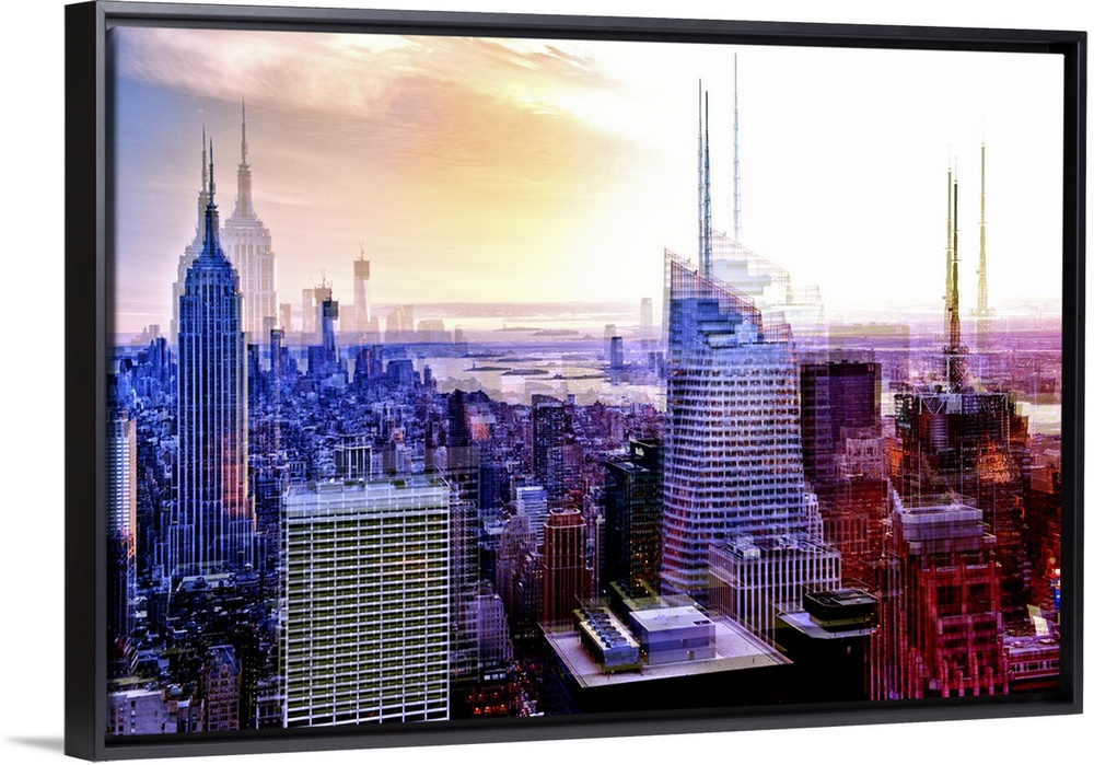 <p>Photo of the Manhattan skyline at sunset in the evening with a layered effect creating a feeling of movement.</p>
