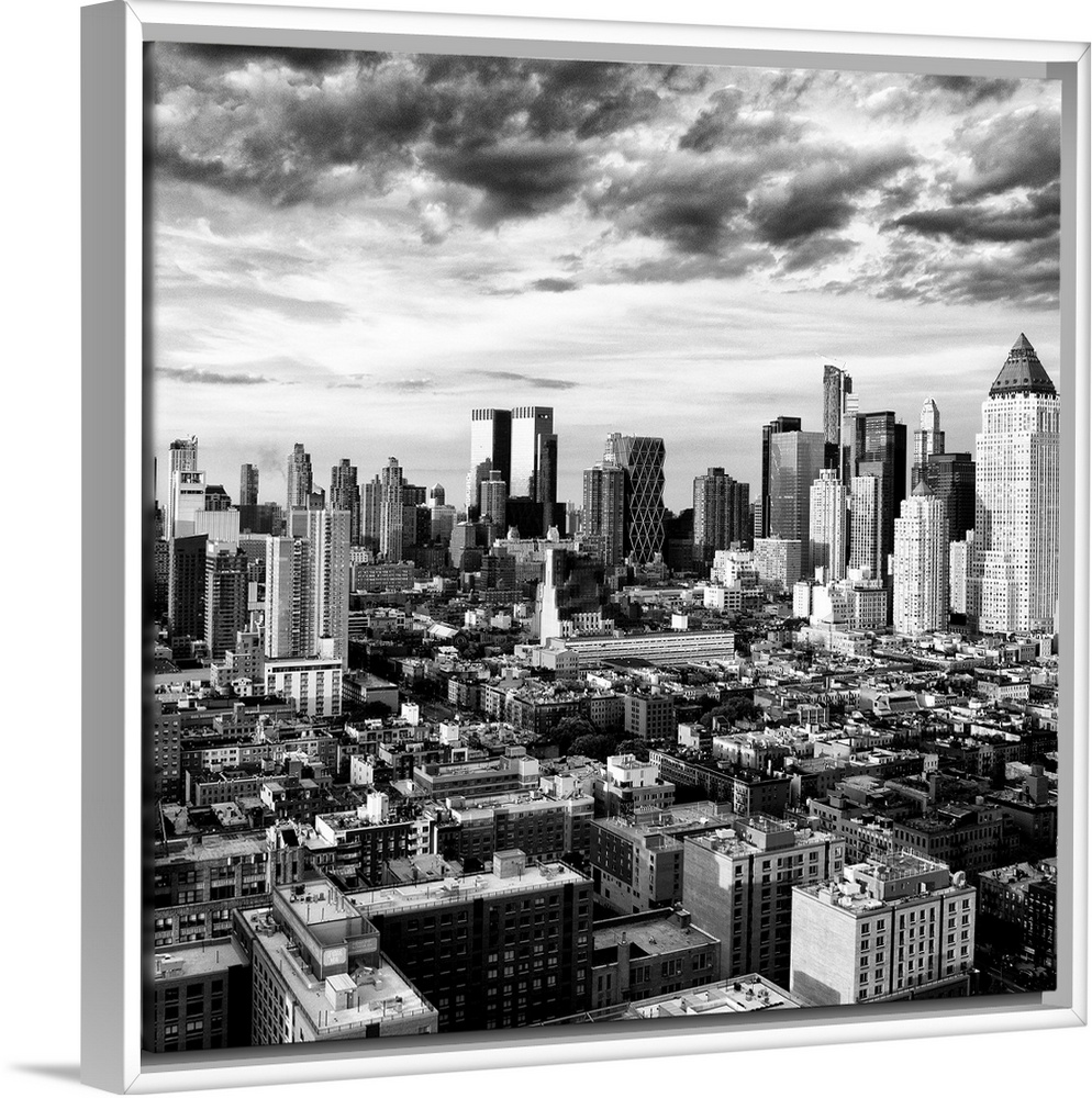 <p>A black and white photo of the New York City skyline under dramatic clouds.</p>