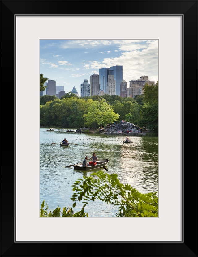 <p>USA, New York City, Manhattan, Central Park, Boats on the lake with Manhattan buildings in the background.</p>