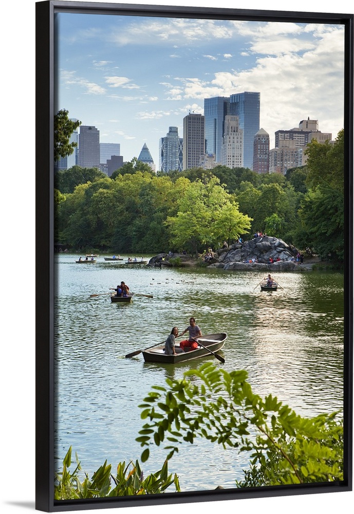 <p>USA, New York City, Manhattan, Central Park, Boats on the lake with Manhattan buildings in the background.</p>