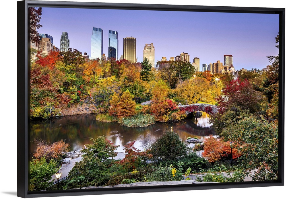 <p>USA, New York City, Manhattan, Central Park, Midtown skyline and Gapstow Bridge during the foliage</p>