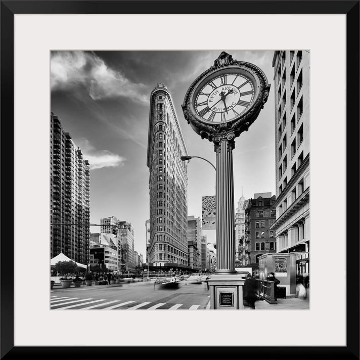 <p>USA, New York City, Manhattan, Flatiron District, Flatiron Building, Manhattan oldest skyscraper and its clock</p>