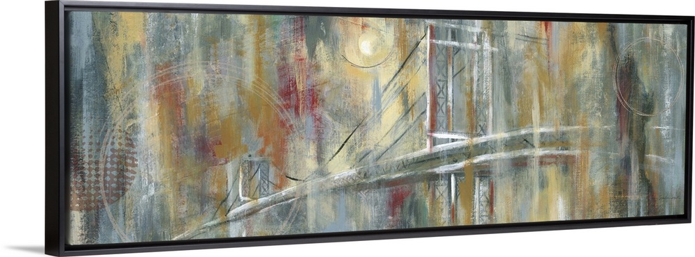<p>Contemporary painting of a bridge in Manahattan, New York City, under a pale moon.</p>