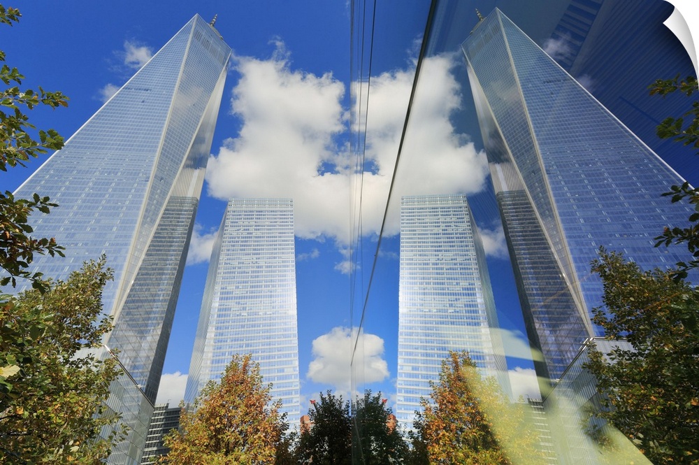 <p>USA, New York City, Manhattan, Lower Manhattan, One World Trade Center, Freedom Tower, View of the Tower from the 9/11 Memorial</p>