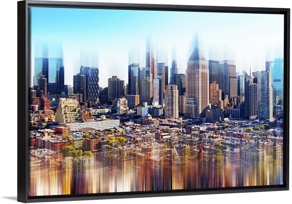 <p>Photo of the Manhattan skyline in the evening with a layered effect creating a feeling of movement.</p>