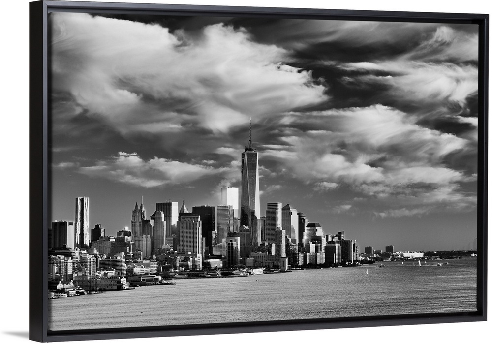 <p>USA, New York City, Manhattan, Lower Manhattan, One World Trade Center, Freedom Tower, View across the Hudson River of the Downtown Manhattan and Financial District skyline from New Jersey</p>