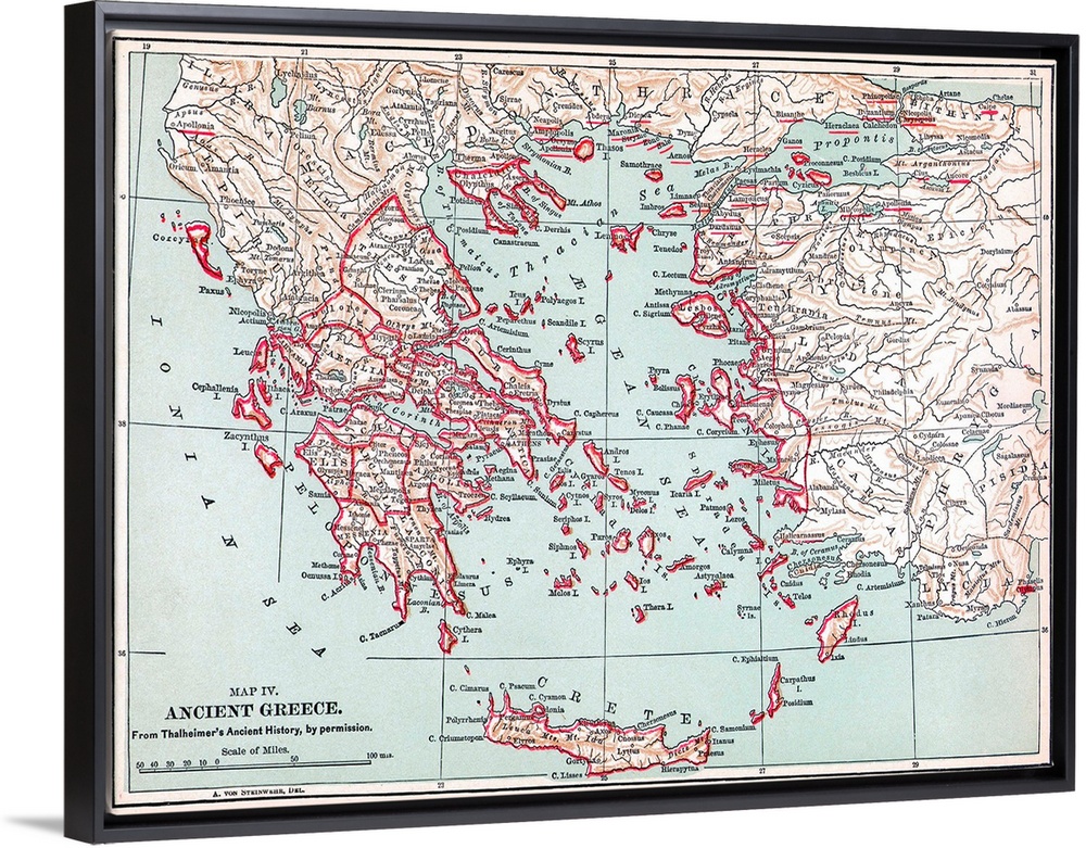 <p>Map, Ancient Greece. Map Of Ancient Greece. Line Engraving, Late 19th Century.</p>
