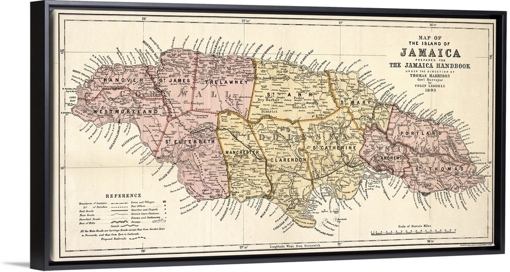 <p>Map, Jamaica, 1893. British Map Of Jamaica By Colin Liddell, Published 1893.</p>