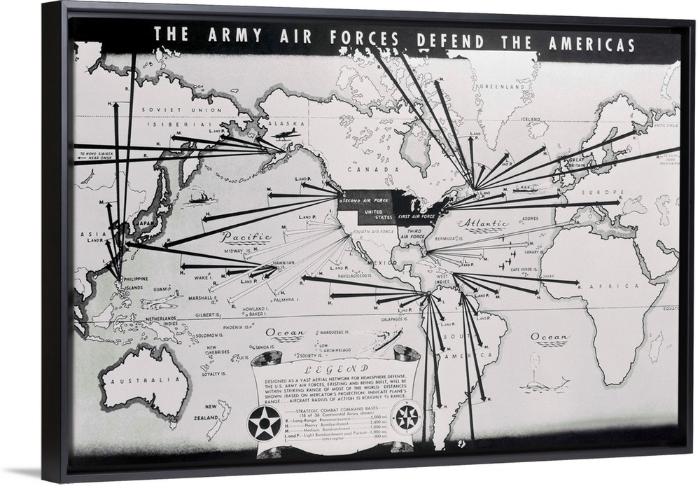 <p>That American air power can strike effectively at Japan and adequately defend the entire Western Hemisphere is evidenced in this map specially prepared under the direction of leading military experts for the authoritative aeronautical magazine Flying and Popular Aviation. The Range of our interceptor and bombardment airplanes operating from advanced Pacific bases in Hawaii, the Philippines, and Alaska clearly indicate that a powerful offensive is possible against the Japanese Islands, whose strategic bases are the lifeline of her Navy.</p>