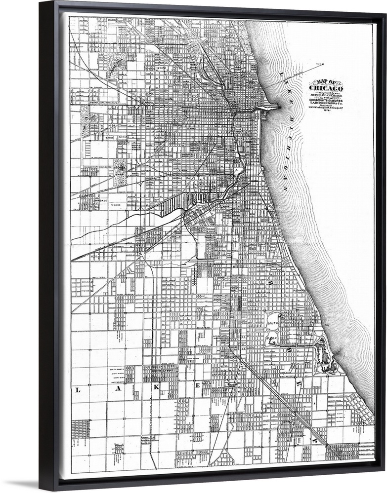 <p>Map, Chicago, 1874. Map Of Chicago, Illinois, And Its Suburbs. Line Engraving, 1874, By Rufus Blanchard.</p>