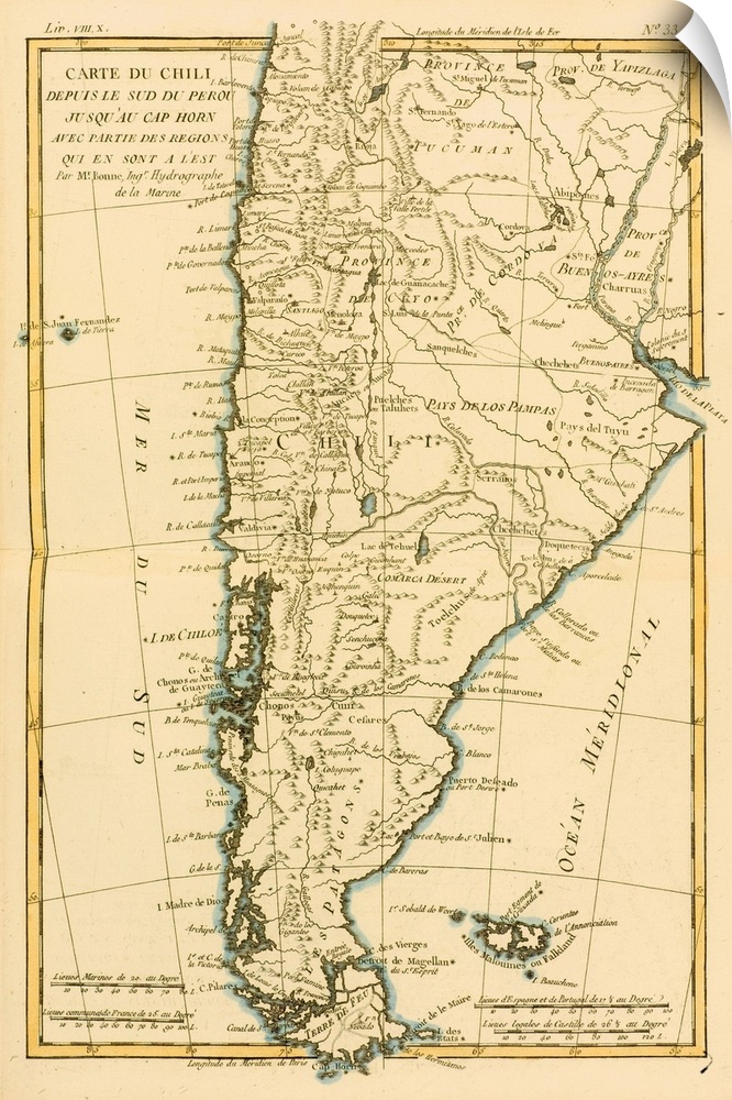 <p>Map Of Chile And Southern Peru To Cape Horn, Circa. 1760. From "Atlas De Toutes Les Parties Connues Du Globe Terrestre,"? By Cartographer Rigobert Bonne. Published Geneva, Circa 1760.</p>