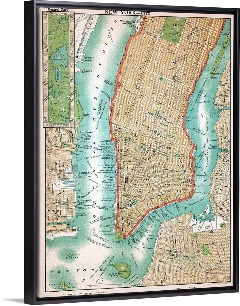 <p>Map of lower Manhattan and Central Park, New York City, lithograph, circa 1890.</p>