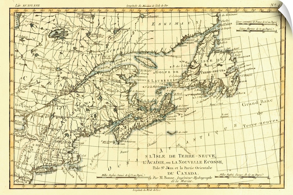 <p>Map Of Newfoundland Nova Scotia And Eastern Canada, Circa. 1760. From "Atlas De Toutes Les Parties Connues Du Globe Terrestre,"? By Cartographer Rigobert Bonne. Published Geneva, Circa. 1760.</p>