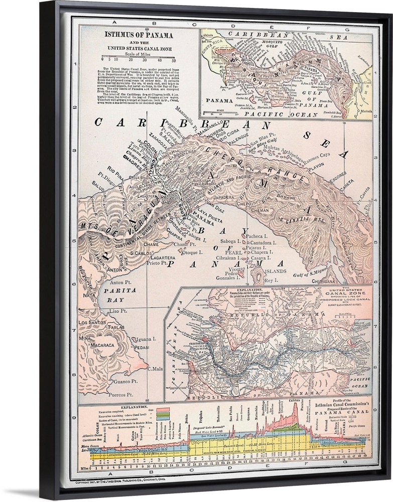 <p>Map, Panama, 1907. Map Of Panama Showing the United States Canal Zone And Proposed Route Of Canal. Color Engraving, 1907.</p>