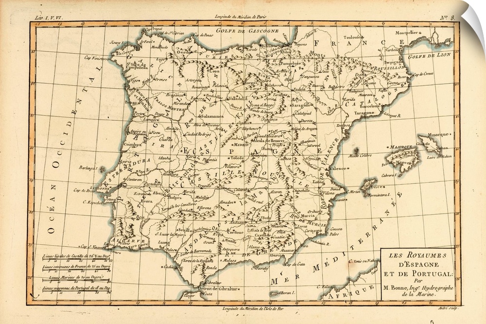 Art Charles Marie Rigobert Bonne Maps Antique Maps Portugal Spain