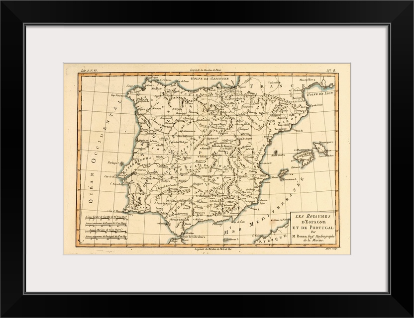 Art Charles Marie Rigobert Bonne Maps Antique Maps Portugal Spain