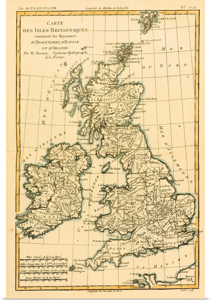 Art Charles Marie Rigobert Bonne Maps Antique Maps England Ireland Scotland